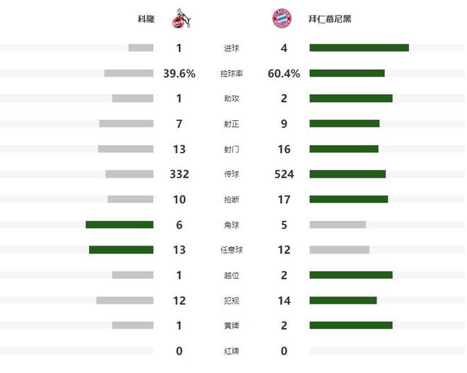 第64分钟拜仁左侧角球开出,凯恩前点头球一蹭,再次攻破了科隆的球门,帮助拜仁将领先的优势扩大到了3-1,彻底终结了胜负的悬念,新赛季凯恩在14场比赛中,已经为南大王创造了25粒球(22粒进球和3次助攻),第72分钟奥利塞锦上添花,将全场比分定格为了4-1。