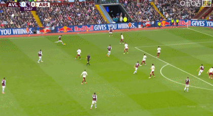 第36分钟,卡什抽射打穿拉亚小门,阿森纳0-1维拉